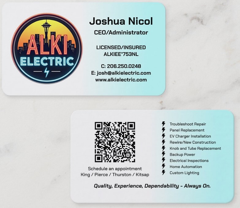 It’s been a long road, but I’m thrilled and proud to announce the official launch of Alki Electric, a new residential electrical business serving the Greater Seattle area!